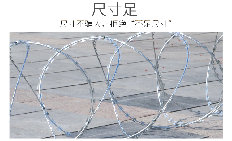 刀片刺繩的主要安裝范圍是在監獄、圍墻、邊境哨所、軍事領域等等上面,采用優質熱鍍鋅板經過沖壓、包裹而成,具有良好的抗腐蝕和防護能力。由于刀片刺繩表面具有鋒利的尖刺使得在安全防護上受到了客戶不斷好評。